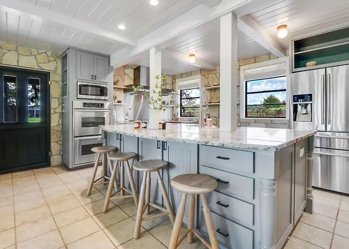 The 2-bedroom D2 Farms Main House Villa is located at a 7 km distance from Silo Fine Art Gallery & Glass Studio and 10 minutes' drive from Art on 12. A fully-fitted kitchen with a microwave oven, a dishwasher and coffee & tea making machines is included at this Wimberley villa so that guests can cook for themselves.